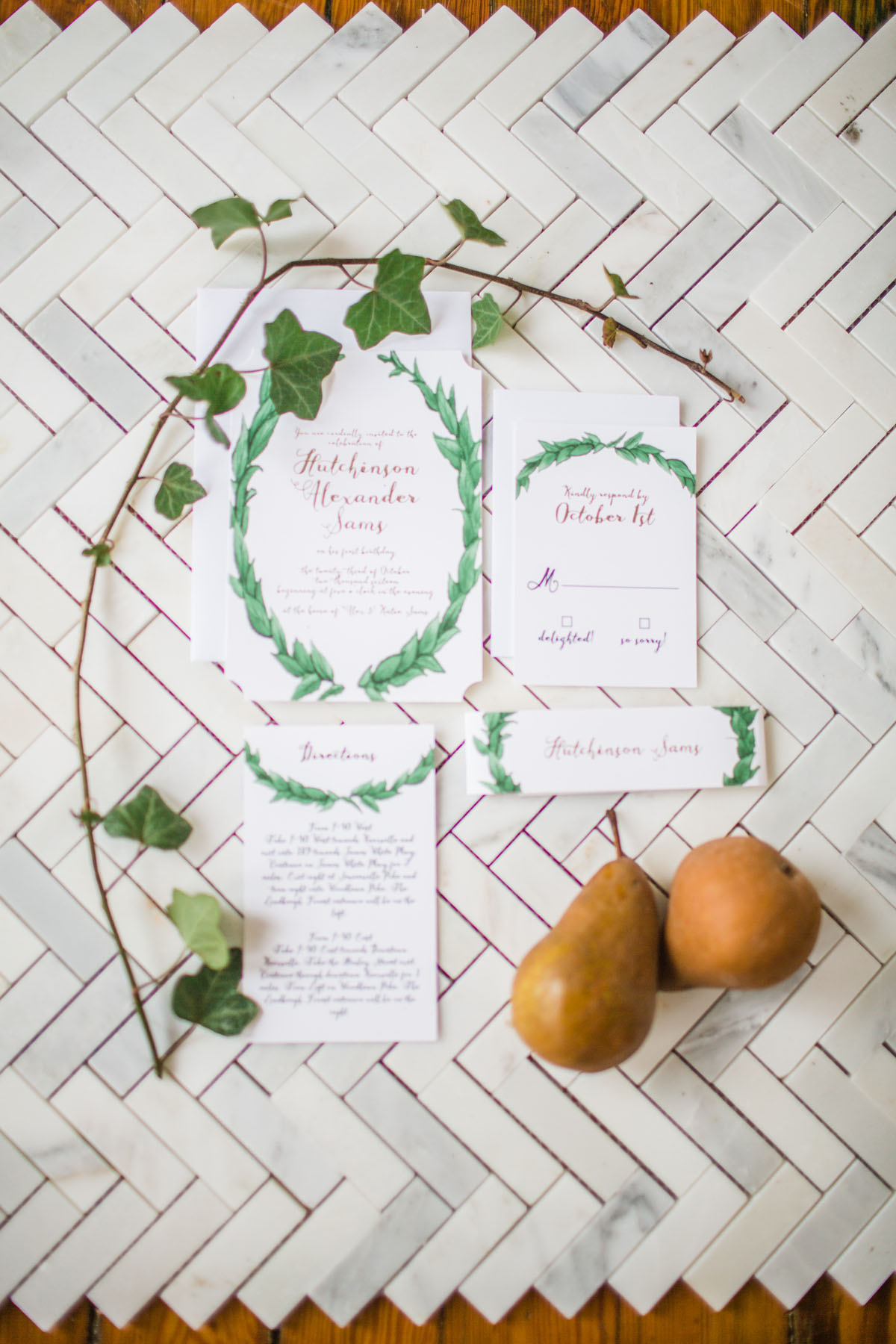 I contacted Charity of Honeybee Events for help in design and styling. Drawing from inspiration from the Velveteen Rabbit, she created a beautiful indoor garden feel with whimsical placement of ivy on the wall. Also incorporated were small wooden snails and a frog to enhance the garden-feel.