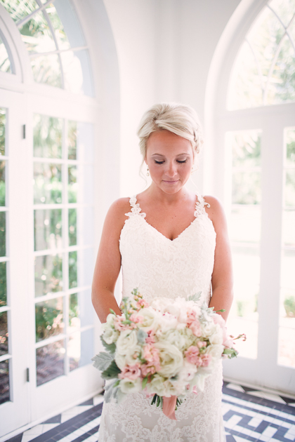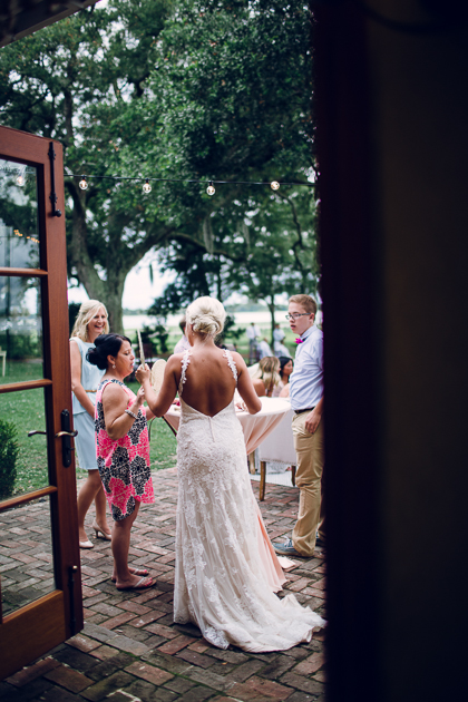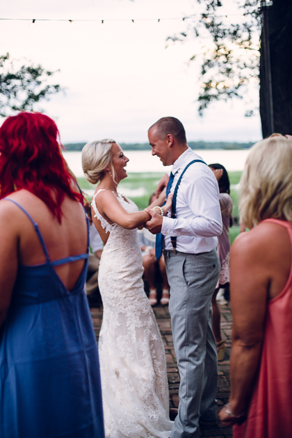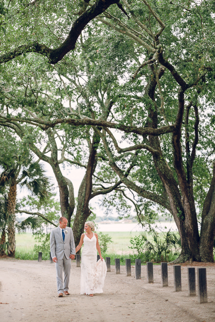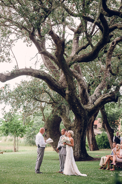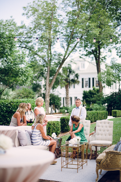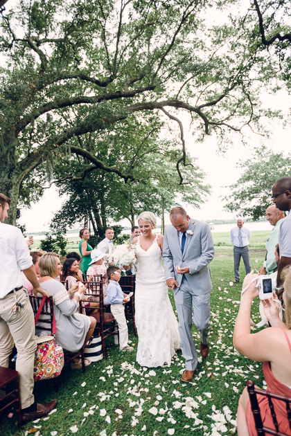 With the Ashley River in the background on a warm Summer’s day, Adam and Shannon were wed on the grounds of Lowndes Grove Plantation. The smell of salty air permeated the coastal air as the Spanish moss swayed in the Lowcountry breeze. The couple chose to have an intimate gathering, attended only by close friends and immediate family. Included in the close group was NASCAR driver and Daytona 500 winner, Trevor Bayne, who escorted the mother of the groom. Shannon’s choice of blush colored blooms and soft details were contrasted with the deep greens of the Live Oaks, salty marsh and the Ashley River. Shannon adored the fresh styling by Honeybee Events which invited a relaxed atmosphere with her eclectic mix of romantic elements. The love felt for Adam and Shannon was palpable as the smiles and hugs rarely ceased. Dancing went well into the night and just after sunset, Adam and Shannon escaped into the dimming twilight into their new life together.